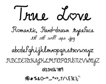 Font True Love, Un carino, scritto a mano, lettera romantica e set di caratteri. Con O Come Simbolo del Cuore, perfetto per San Valentino